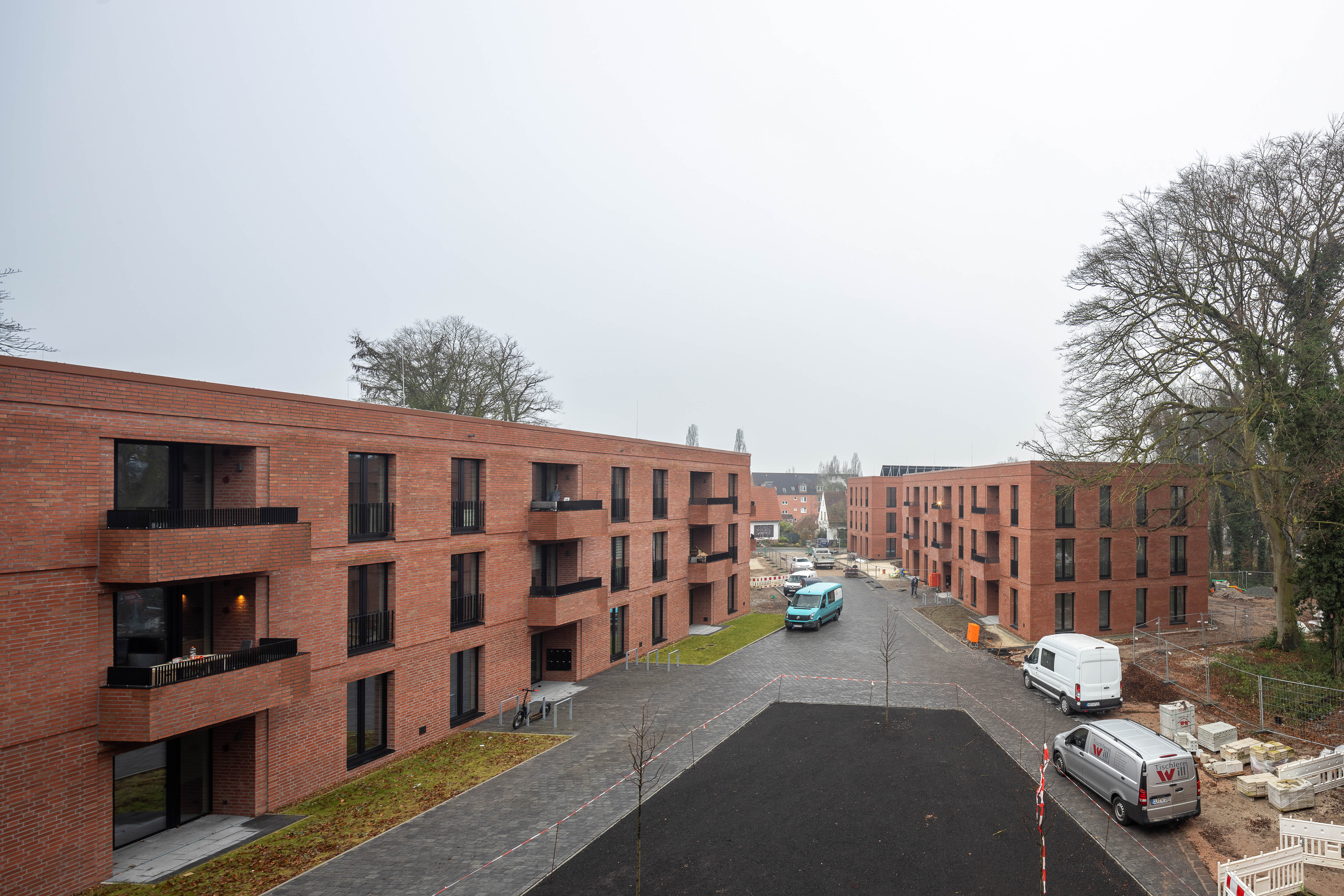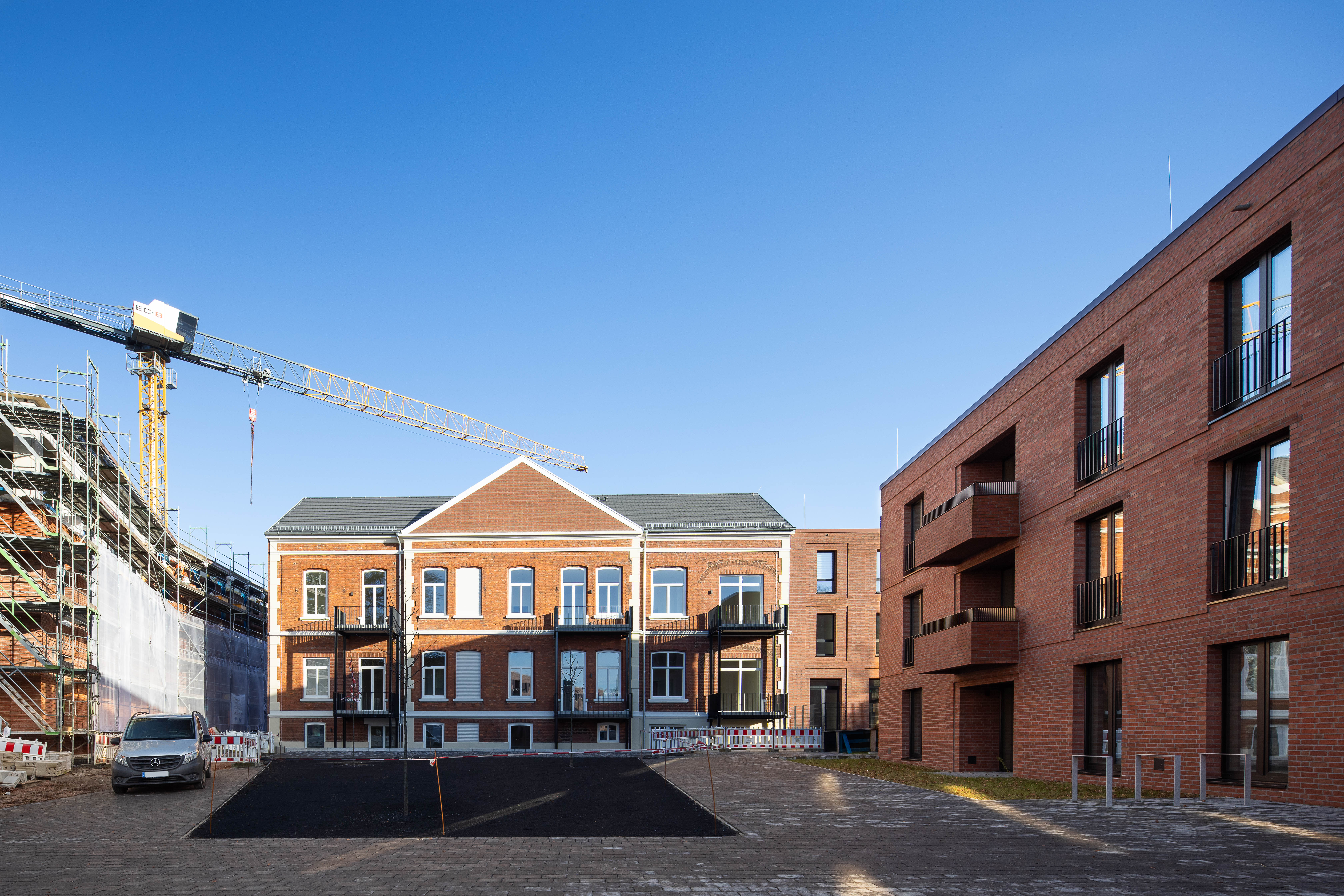 Mit ihren Klinkerfassaden aus rotem Backstein und Mauerwerksvor- und Rücksprüngen zitieren die Neubauten die Gestaltungsmerkmale des historischen Stiftsgebäudes. Der für das Quartier identitätsstiftende Bestandsbau steht im Mittelpunkt des neuen städtebaulichen Ensembles. Die Neubauten sind im KfW-55-Standard errichtet. Ein Nahwärmenetz mit Wärmeerzeugung mittels Blockheizkraftwerk und Wärmepumpe versorgt die einzelnen Baukörper mit Wärme. Die Dächer erhalten zusätzlich Photovoltaikmodule und Solarthermieanlagen. Die ersten Wohnungen wurden bereits bezogen und bis zum Spätsommer soll das gesamte Areal mitsamt Außenanlagen fertig sein.